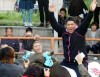 - Belts an inside-the-park homer (yes, I realize it was a fielding error on Ishimine. Let us have our fun.) in his first intrasquad game, in the rain, plus two other hits. Here’s my video of the first part of the run and a still of his slide. (Sorry for the poor quality.)